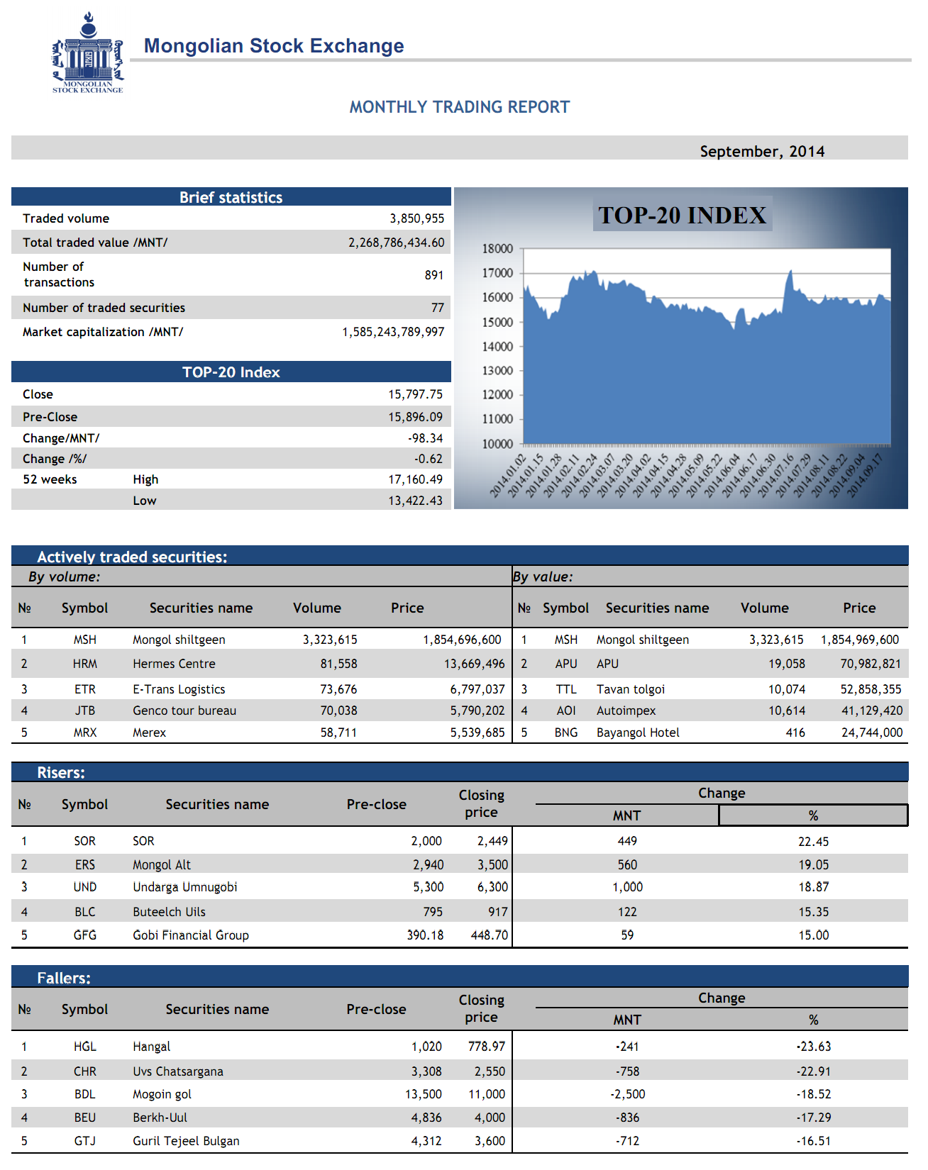 TRADING REPORT OF SEPTEMBER 2014