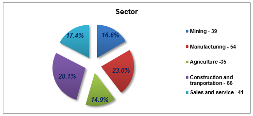 As of August 25, 2015 total of 235 joint stock companies listed at Mongolian Stock Exchange and hereof Mining companies 16.6%, Manufacturing 23%, Agriculture 14.9%, Construction and transformation 28.1%, Sales and Services companies 17.4% composed respectively.